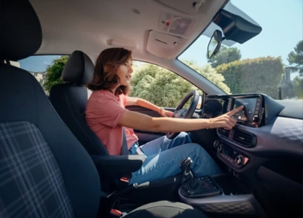 Geniet van naadloze connectiviteit in de vernieuwde Hyundai i10 Comfort met een nieuw volledig digitaal dashboard en een 8-inch touchscreen.